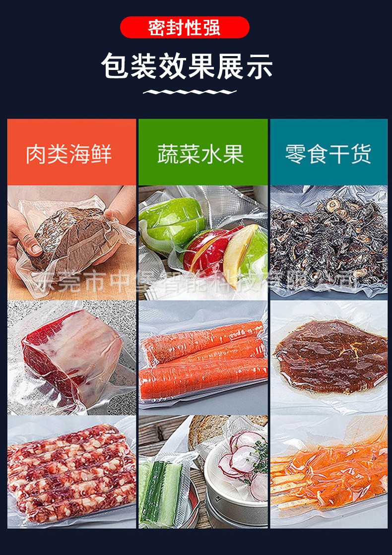 1. 保鮮效果顯著:能有效抑制微生物生長和氧化反應,大幅延長食品等產品的新鮮度和貨架期。例如,新鮮的肉類經過真空包裝,可在冷藏條件下保存數倍于普通包裝的時間。