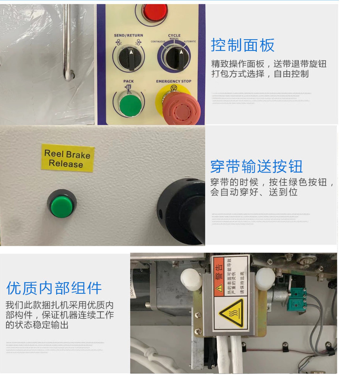 它主要由進帶機構、捆扎機構、加熱裝置、控制系統等組成。