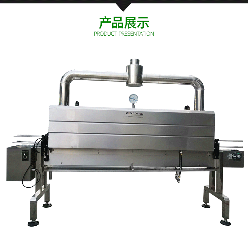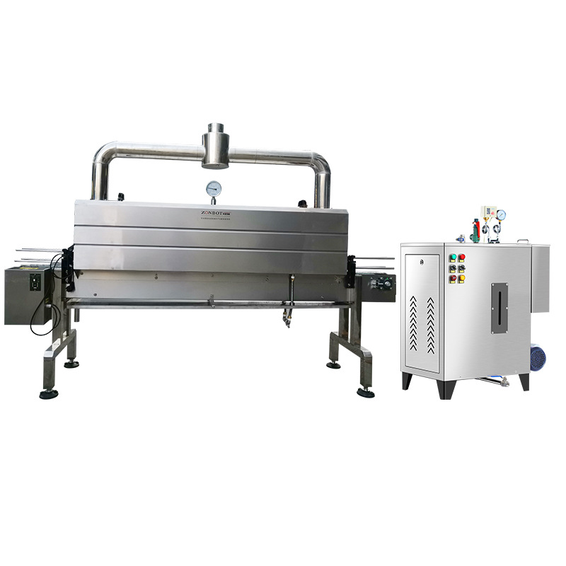 其工作原理是利用蒸汽的高溫和熱能,對覆蓋在產品外的收縮膜進行加熱。當收縮膜受熱達到一定溫度時,其分子結構發生變化,從而產生收縮現象,緊緊包裹住產品。