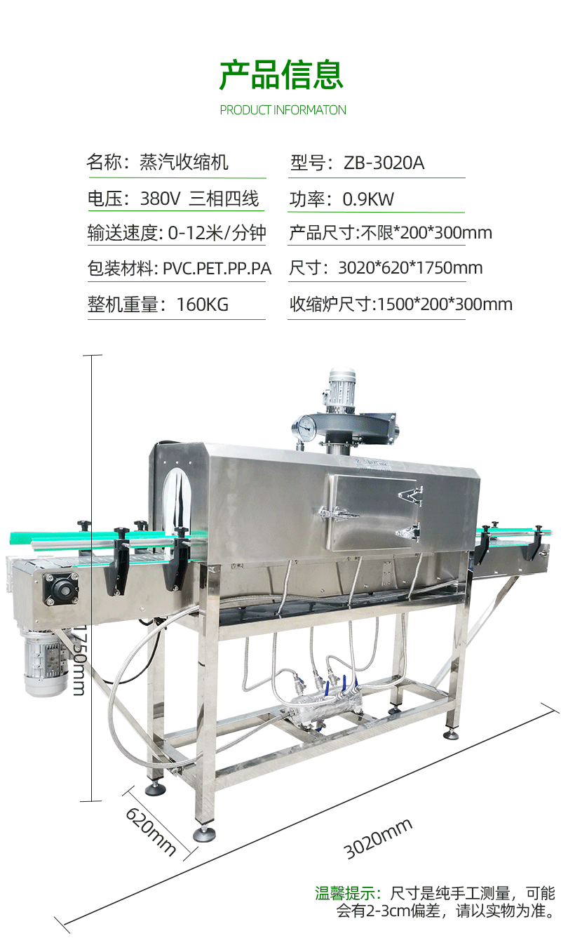 - 簡單易用:蒸汽收縮機通常具有直觀的操作界面,操作人員只需經過簡單培訓即可熟練掌握設備的使用方法。