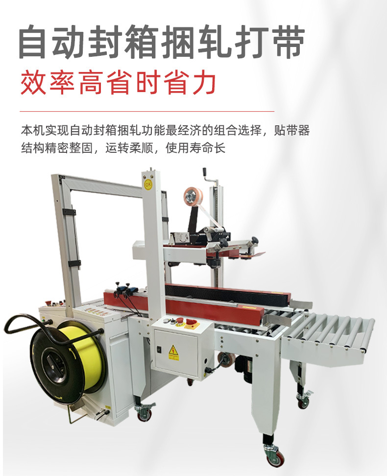 全自動封箱打包機適用范圍廣:可以對各種形狀、大小的物品進行包裝,只要選擇合適的紙箱和包裝材料(如膠帶、打包帶等),就能滿足不同產品的包裝需求。