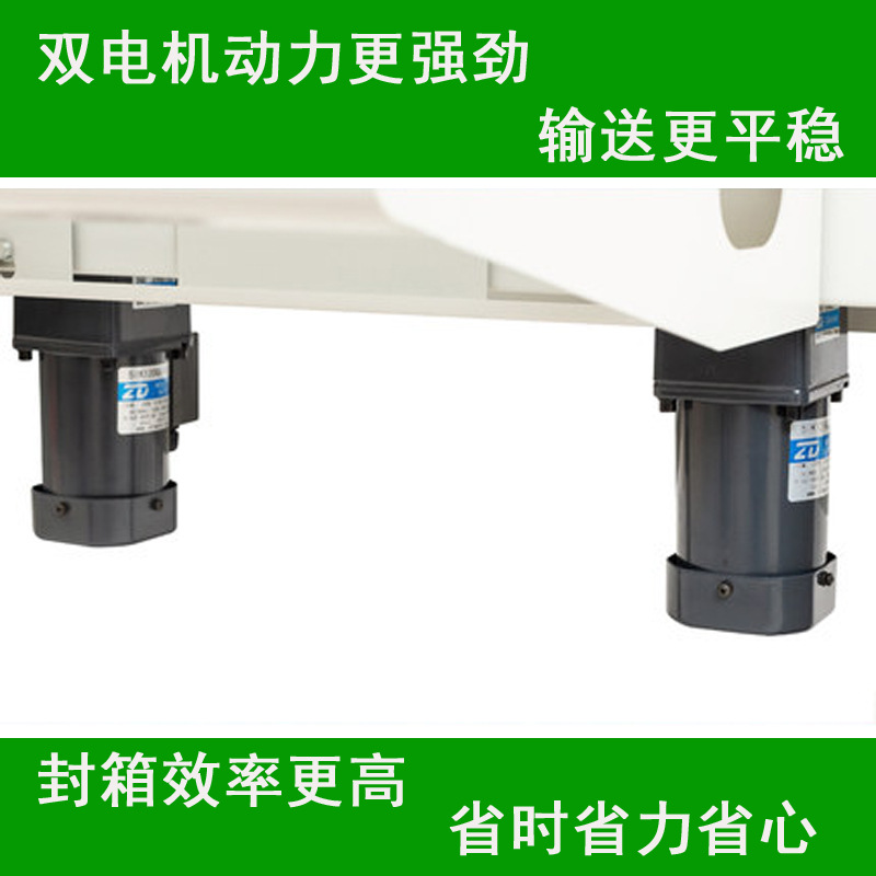 - 封箱機(jī)通過機(jī)械裝置將紙箱的上下蓋自動折合,然后利用膠帶或熱熔膠等材料對紙箱進(jìn)行封口。以膠帶封箱機(jī)為例,其工作時,紙箱通過輸送裝置進(jìn)入封箱機(jī),機(jī)械手臂會先將紙箱的上蓋和下蓋撫平折合,接著膠帶分配器會將膠帶按一定長度切斷,并粘貼在紙箱的封口處,完成封箱操作。
