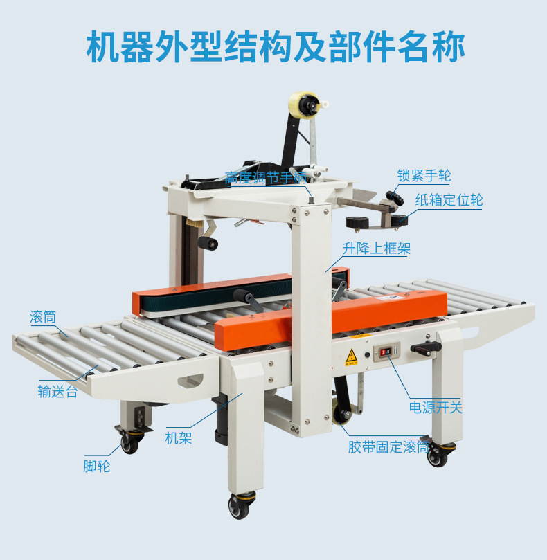 封箱機(jī)是一種用于對紙箱進(jìn)行封裝的設(shè)備,在各類生產(chǎn)企業(yè)和物流配送中心應(yīng)用廣泛。以下是關(guān)于封箱機(jī)的詳細(xì)介紹: