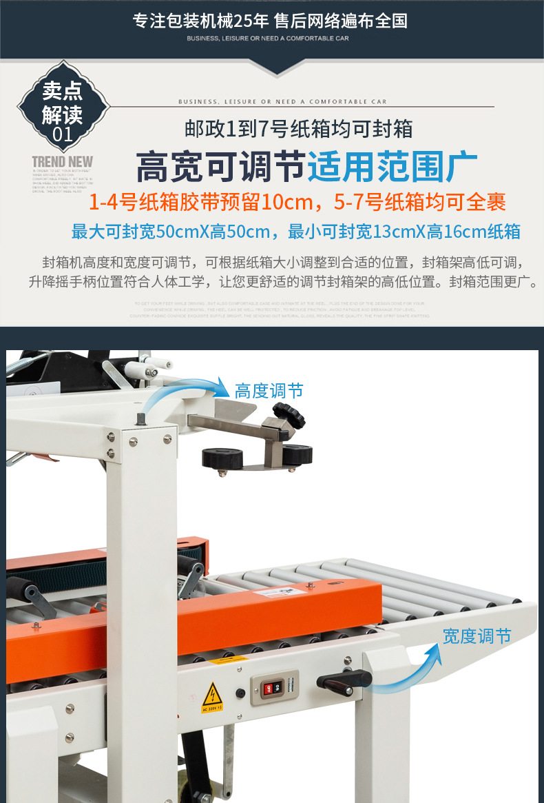 - 紙箱尺寸限制:不同型號的封箱機(jī)通常適用于一定尺寸范圍內(nèi)的紙箱封箱,如果企業(yè)需要包裝的紙箱尺寸變化較大,可能需要更換不同規(guī)格的封箱機(jī)或?qū)υO(shè)備進(jìn)行調(diào)整,這會影響生產(chǎn)效率和增加成本