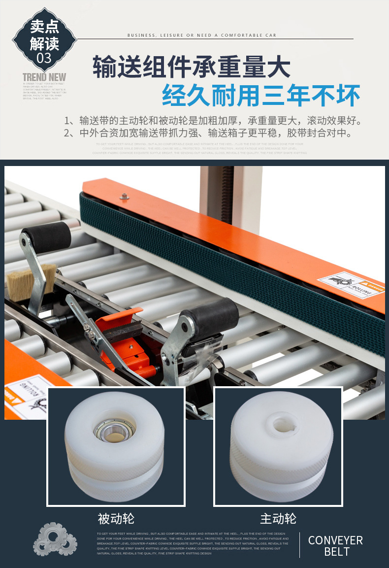 - 輸送系統(tǒng):主要由輸送帶、傳動輥和電機(jī)等組成,用于輸送紙箱,使其按一定速度平穩(wěn)地通過封箱機(jī)的各個工作區(qū)域。