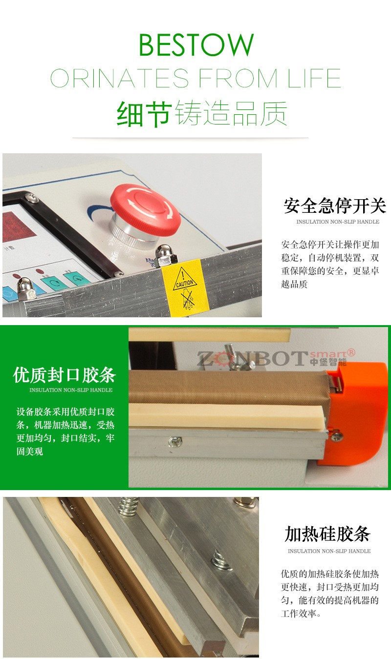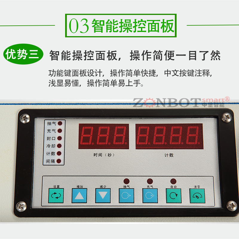 真空包裝機(jī)能夠自動(dòng)抽出包裝袋內(nèi)的空氣,達(dá)到預(yù)定真空度后完成封口工序。亦可再充入氮?dú)饣蚱渌旌蠚怏w,然后完成封口工序。真空包裝機(jī)常被用于食品行業(yè),因?yàn)榻?jīng)過(guò)真空包裝以后,食品能夠抗氧化,從而達(dá)到長(zhǎng)期保存的目的。