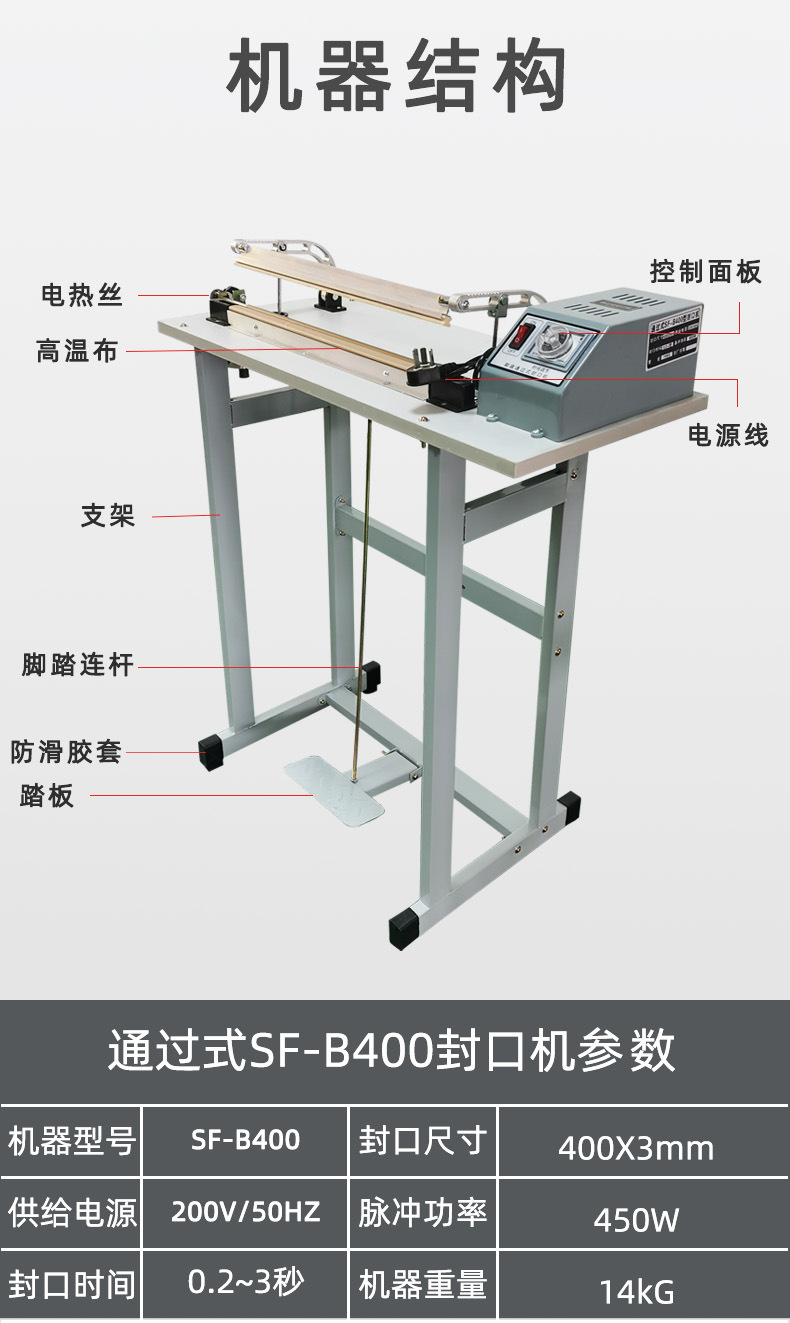 腳踏封口機(jī)是一種理想的封口設(shè)備,?適用于各種塑料袋薄膜的封口及制袋。?它特別適用于醫(yī)藥、?農(nóng)藥、?食品、?日化、?潤(rùn)滑油等行業(yè)的鋁箔袋、?塑料袋、?復(fù)合袋的封口。?這種設(shè)備利用電氣脈沖技術(shù),?能夠顯著縮短封口時(shí)間,?從原來的2-4秒縮短至0.2秒,?具有投資少、?效益高、?封口長(zhǎng)度長(zhǎng)、?操作簡(jiǎn)單等特點(diǎn)。?因此,?腳踏封口機(jī)被廣泛應(yīng)用于食品、?醫(yī)藥、?土特產(chǎn)、?電器軟件、?工廠、?商店、?服務(wù)行業(yè)等領(lǐng)域,?成為這些行業(yè)中不可或缺的封口設(shè)備