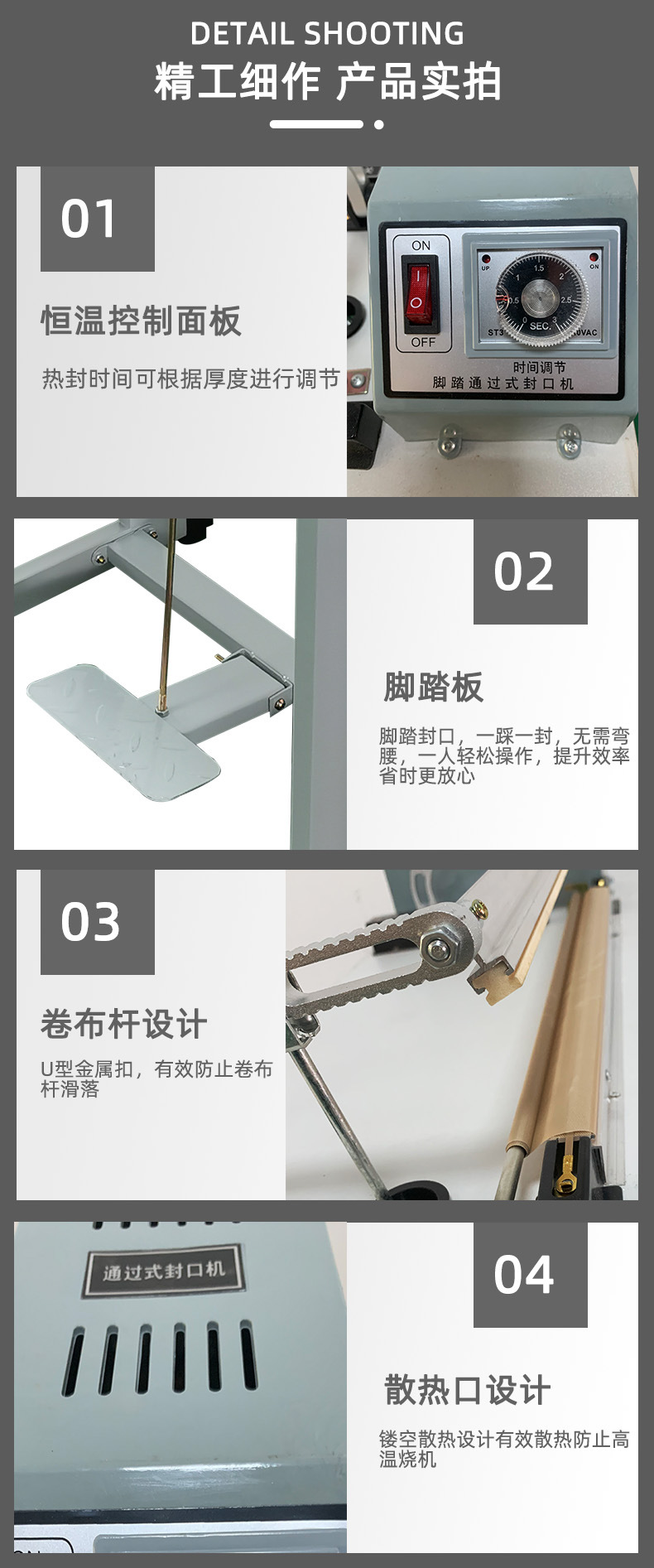 此外,?腳踏封口機(jī)還適用于各種塑料薄膜、?復(fù)合薄膜及鋁塑薄膜的封合,?廣泛應(yīng)用于食品、?土特產(chǎn)、?糖果、?茶葉、?醫(yī)藥、?五金等行業(yè)。?這種設(shè)備的操作簡(jiǎn)單,?加熱時(shí)間可調(diào),?接通電源即可工作,?使得它在商店、?家庭、?工廠等環(huán)境中成為方便且經(jīng)濟(jì)的封口解決方案