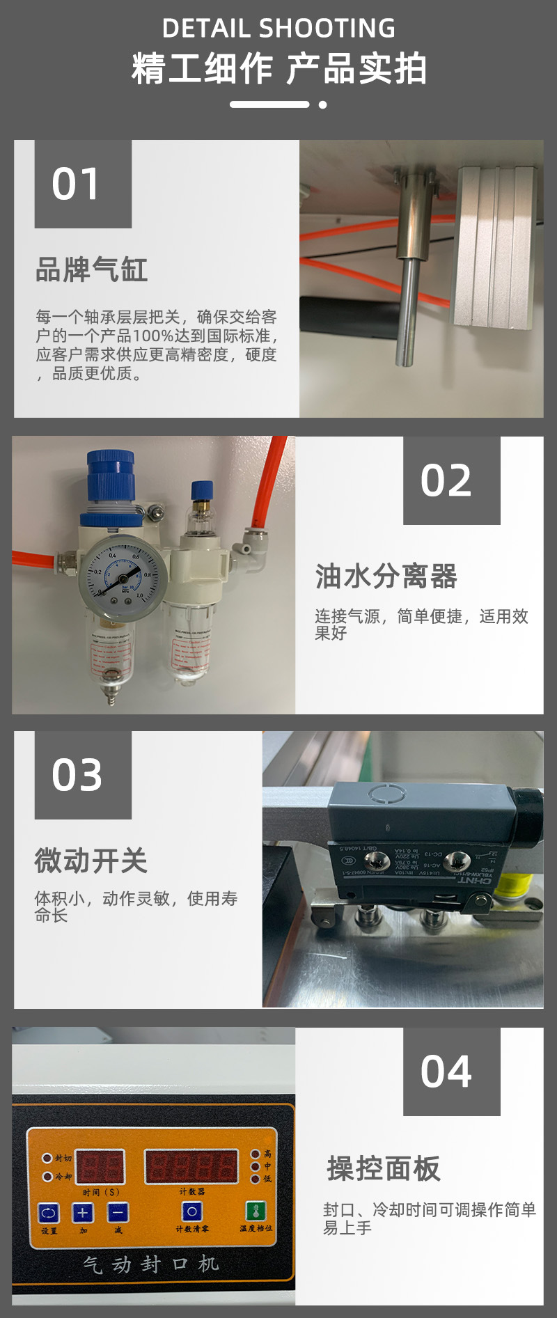氣動封口機是一種利用壓縮空氣作為動力的封口設備,?其應用范圍廣泛,?特別是在化工、?食品、?醫藥、?日化等行業得到了廣泛應用。?這些行業選擇氣動封口機的原因主要包括:?
