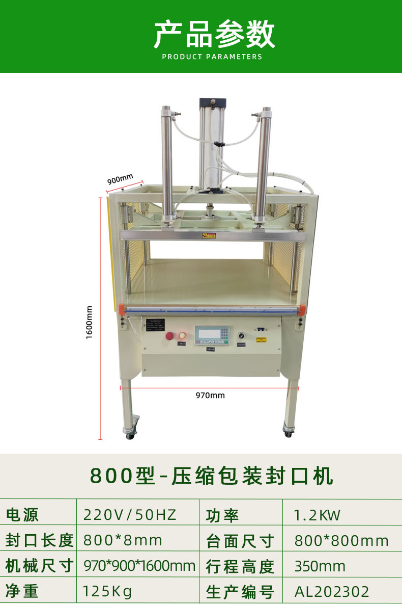 上下限位壓縮封口機(jī)可調(diào)節(jié)壓縮厚度,適用于各自棉布料,棉被,枕頭,乳膠,坐墊等壓縮封口包裝