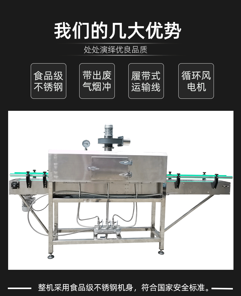 蒸汽收縮機是新一代收縮膜機,設計精巧, 外型美觀,不占空間,移動,安裝迅速快捷,超大范圍的調節,使其可適用于各種輸送帶和滑道。瓶身﹑瓶底以及整體。適用于食品、藥品、化妝品、農藥等行業的玻璃瓶、塑料瓶、紙杯等容器的標簽收縮。先人工套上標簽膜,放進自動蒸汽收縮機進行收縮包裝,最后流水線出產品