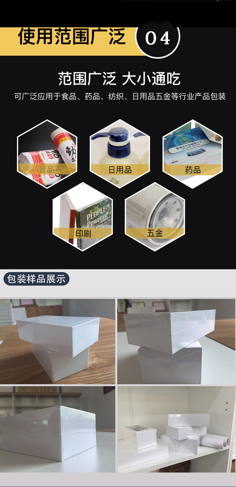 封切機是全自動無人化操作的包裝機,廣泛用于批量生產包裝的流水作業,工作效率高,自動送膜打孔,自動套膜封切,自動卷取廢料;只需手動調節導膜系統以及手動調節進料輸送平臺,適用不同寬度及高度的產品。可與自動化包裝流水線配套使用